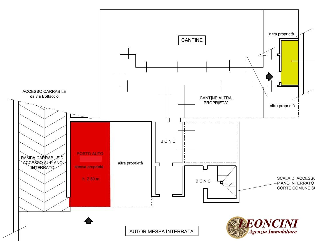 The single lot being auctioned consists of the following assets: a ground-floor apartment with direct access to an exclusive courtyard from Via Ratti via a pedestrian gate; a cellar located in the basement and accessible via the courtyard; a covered parking space located in the basement and accessible via the vehicle ramp from Via Bottaccio;